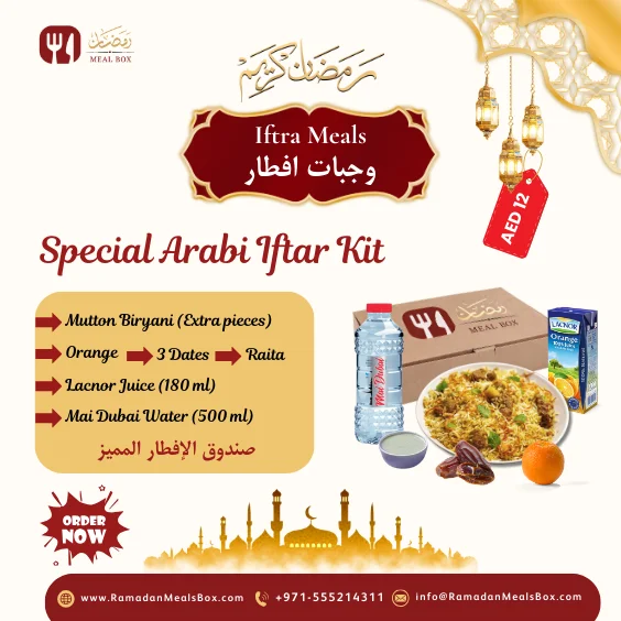 - Trusted Across the UAE. We are honoured to cater to customers who require trusted iftar meal services in the UAE, whether families, charities, or other organisations. Charitable and Sadaqah are the best suited to it. Food giving during Ramadan is an act of goodwill. Choosing the Special Arabi Iftar Kit, you make someone else break the fast with honour, food, and comfort.